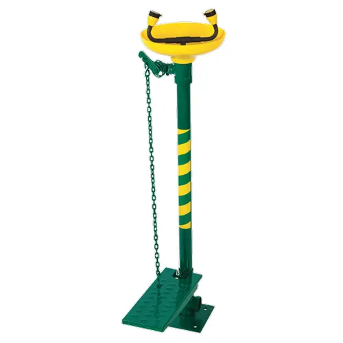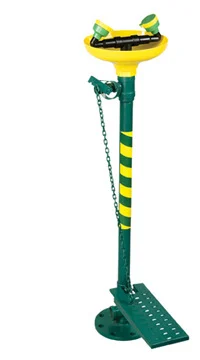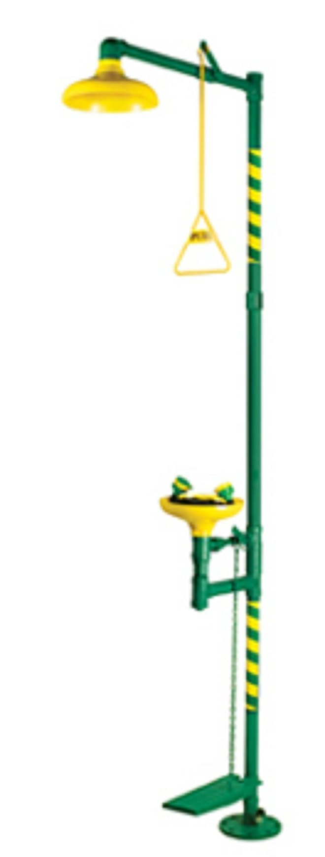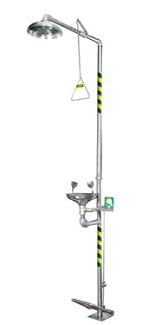 Foot Paddle Operated Eye / Face Wash Unit and Push Pull Rod Operated Body Shower Combination Unit.