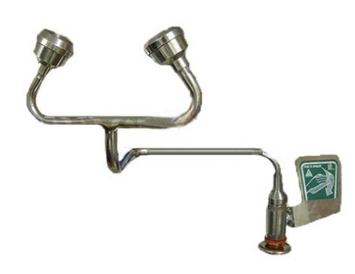Eye/face wash for wall mounting. Unit has stainless steel cover to protect bowl from dust, dirt and other contaminants. Two large FS-Plus spray-type outlet heads deliver a flood of water for rinsing eyes and face.