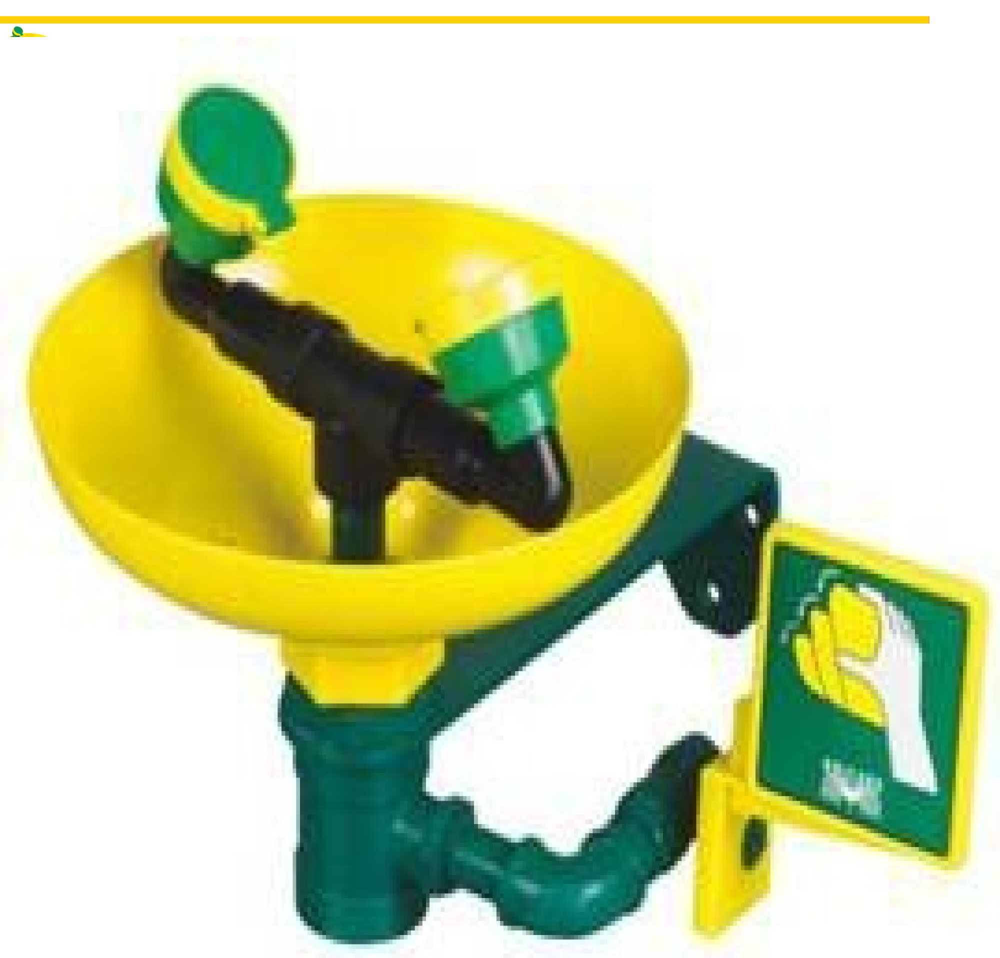 - Corrosion resistant cycolac material made yellow colour eyewash bowls provided.